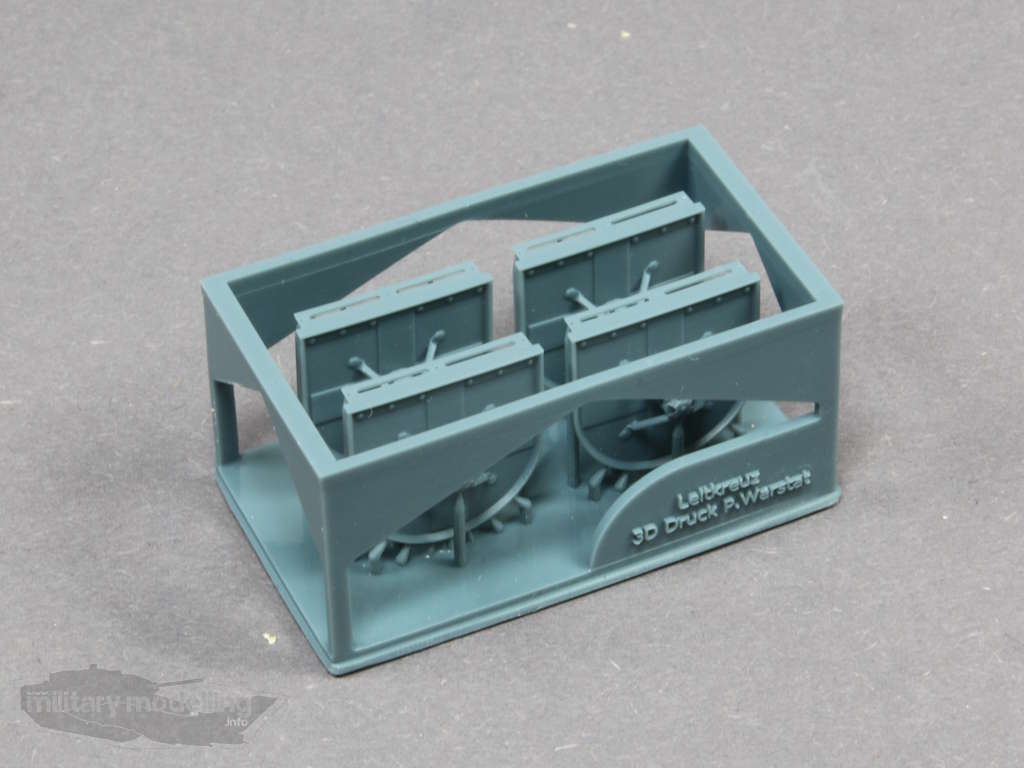 Die Bundeswehr Leitkreuze Zubehörsatz von 3D-Druck P. Warstat liefert feine Details. Als Ersatz der eher einfach gehaltenen Bausatzteile sorgt es sicherlich für einen kleinen Eyecatcher bei Bundeswehr und NATO-Fahrzeugen im großen Maßstab. Empfehlenswert.
