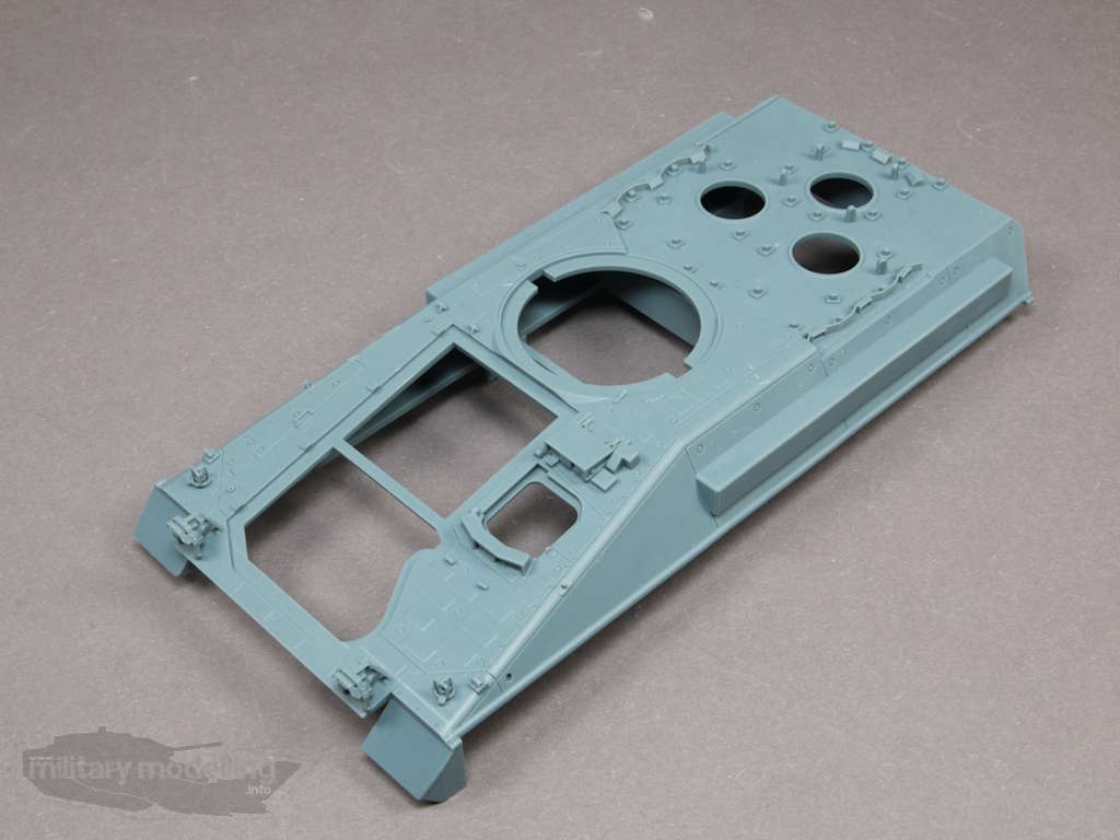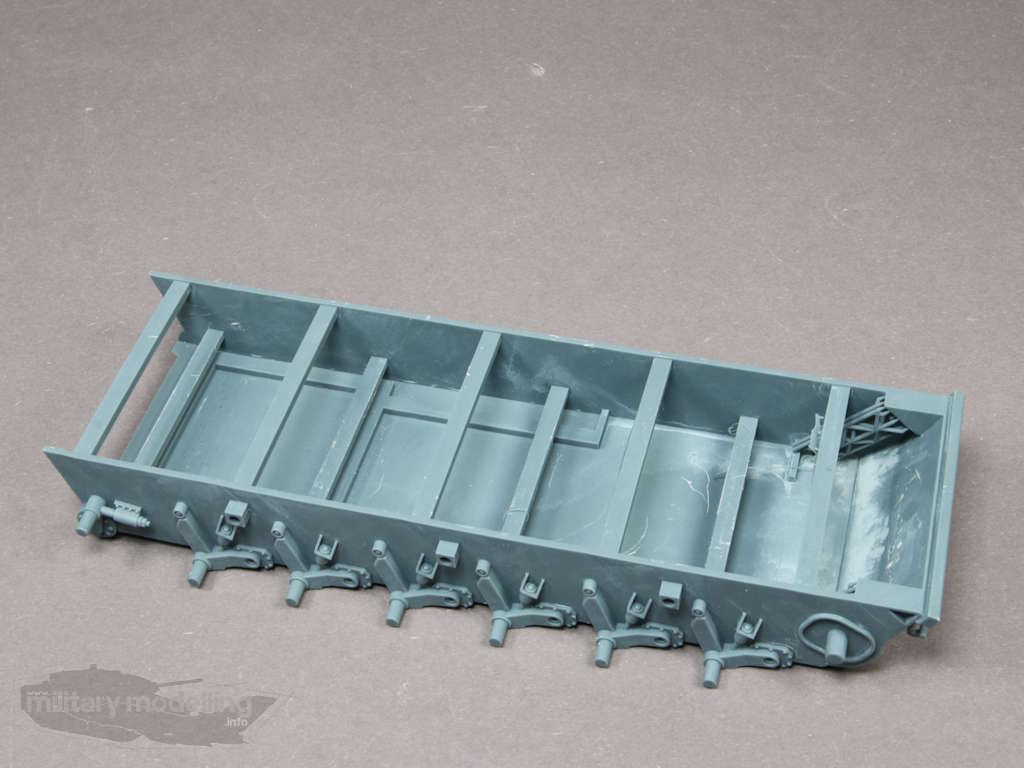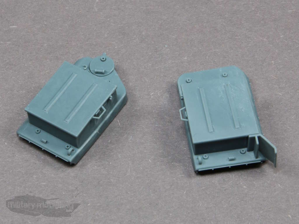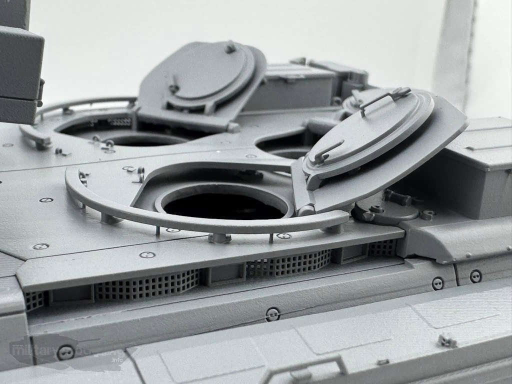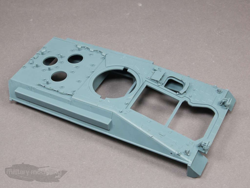 Die Kommandantenluke als auch die Mehrfachwurfanlage ist als eigenes Bauteil enthalten und sind originalgetreu.