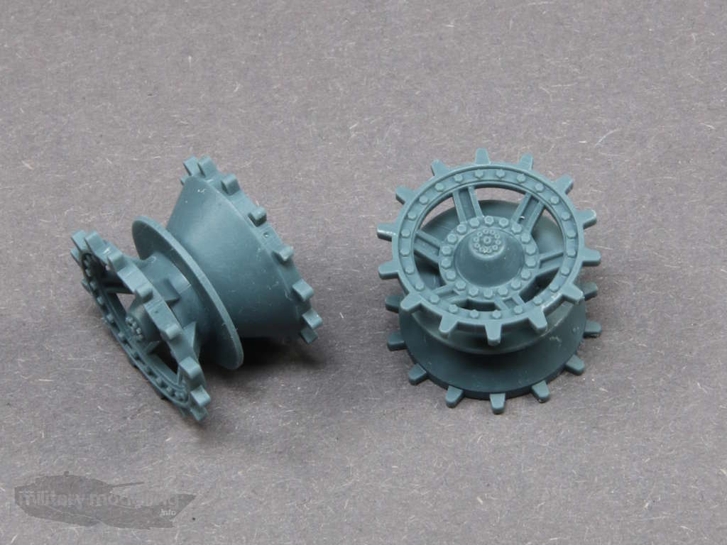 Schauen wir uns nun mal das Fahrwerk an. Antriebskränze und Laufrollen sowie die Stützrollen sind enthalten. Alle drei sind jeweils komplett. Was soll ich sagen – alles tip top.