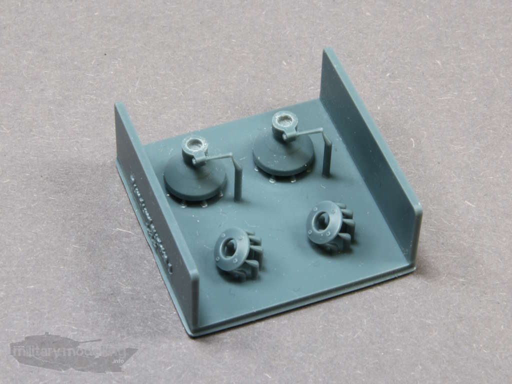 Dazu gibt es noch 2 Halter, welche auf Fahrzeugen aufgeschraubt werden können. Jedoch haben die meisten Gefechtsfahrzeuge einen Dorn, auf dem die Haltestange direkt aufgesteckt wird. Hier zum Vergleich die Originale: