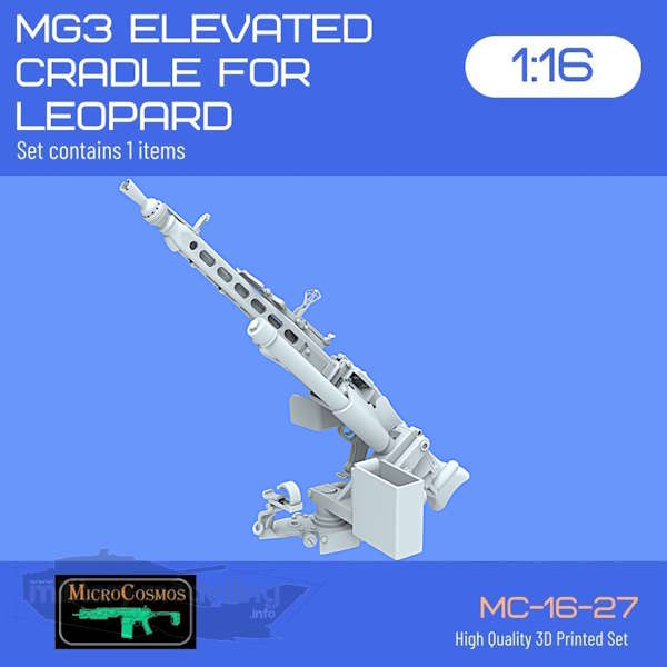 Artikelbezeichnung : MG3 Elevated Cradle for Leopard, 1:16 Art. Nr. : MC-16-27 Preis : ca. 25,00 EUR Maßstab: 1:16 Bausatztyp: Zurüstset Material: Resin Hersteller: 3D MicroCosmos – https://hobbymarket.gr/el/seller/10-3d-microcosmos |