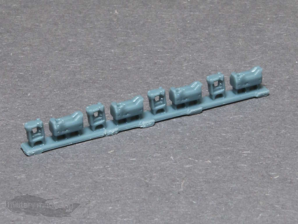 Möchte man die Türen des Fennek offen gestalten und den Blick auf das vorhandene Interieur freigeben, so fehlen im Bausatz die Scharniere dieser. Auch hier schafft der Zubehörsatz Abhilfe. Die vier Scharniere sind auf einem Anguss enthalten. Diese sind so filigran ausgebildet und direkt auf den Support gedruckt. Hier ist Vorsicht geboten beim Lösen des Bauteils. Es wird wahrscheinlich schnell zu Bruch gehen.