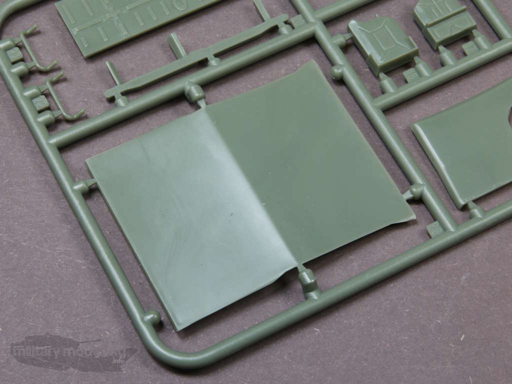 Jetzt geht es mit den Bauteilen der Karosserie, welche aus mehreren Einzelteilen besteht weiter. Hier finden sich die gut gemachten Seitenteile sowie das mehrteilig ausgeführte Verdeck. Das Verdeck zeigt nur einen mäßigen Faltenwurf.