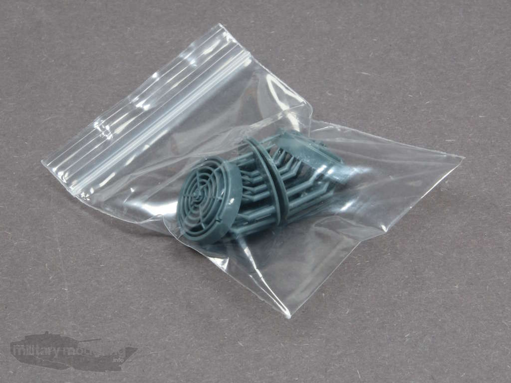 Alle Bauteile der Open Exhausts von AFV Modeller mit der Artikelnummer AFV-16283 werden in einem stabilen Karton geliefert. Darin befinden sich die beiden 3D-Druckteile in einem Druckverschlussbeutel.