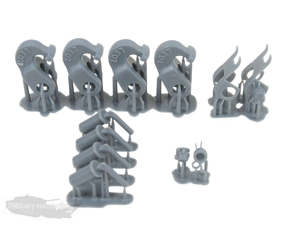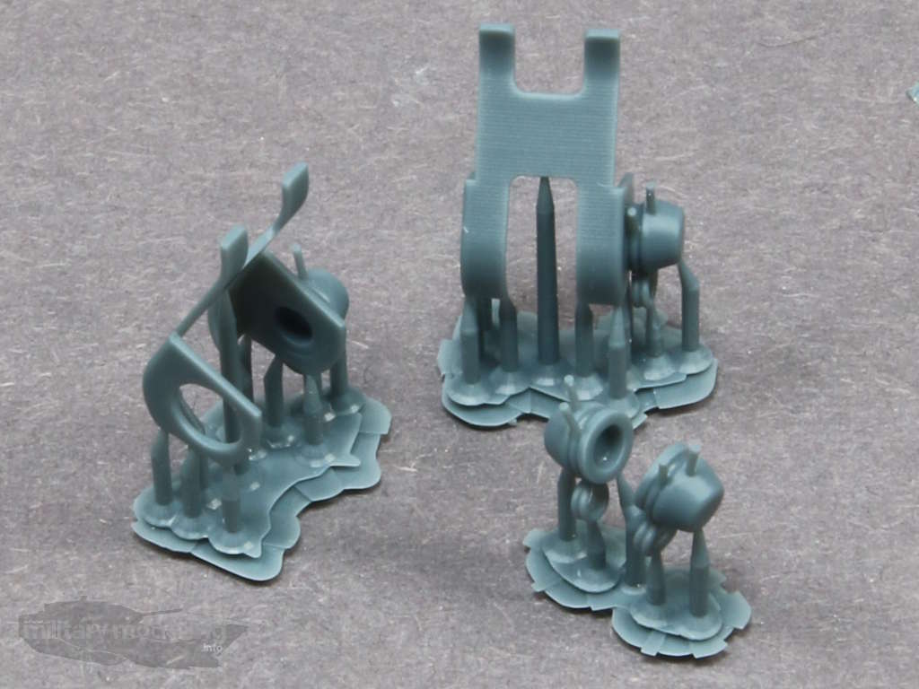 Alle Bauteile des Zubehör-Sets sind im 3D-Druck entstanden und aus grauem Resin hergestellt. Stützstrukturen müssen noch durch den Modellbauer entfernt werden.