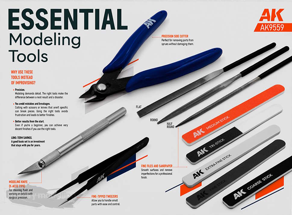 Wenn man mit dem Modellbau beginnt stellt sich immer wieder die Frage nach dem passenden ersten Werkzeug. Hier kann AK Interactive mit seinem Essential Modeling Tools Set aushelfen. Schauen mir uns das mal näher an.