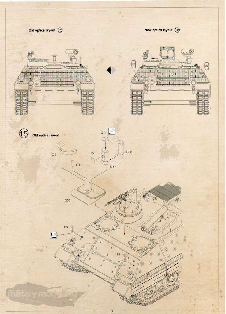 In den 16 Seiten sind 4 Seiten mit Bemalvorlagen in Form von 5-Seiten-Ansichten enthalten. Als Farbvorschläge werden die nutzbaren Farben aus dem Sortiment von Mr. Hobby, Vallejo, Mission Models, Tamiya und Humbrol aufgeführt. Gleichzeitig werden die Positionierung der Decals gezeigt.