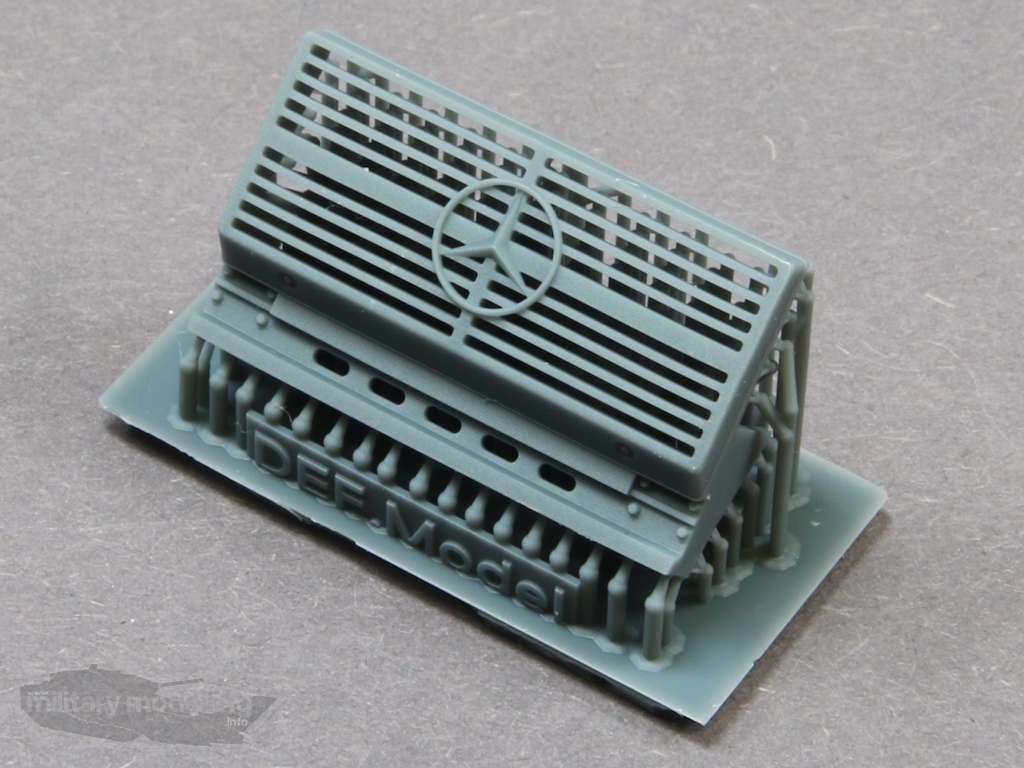 Aber wie bereits erwähnt liefert DEF.MODEL nicht nur die Räder, sondern auch noch einen korrigierten Kühlergrill als 3D-Druckteil. Am Kühlergrill selbst ist das beim Original vermisste Marken-Emblem enthalten. Das Bauteil selbst kommt noch mit den Stützen daher, die vorsichtig abgetrennt werden müssen.