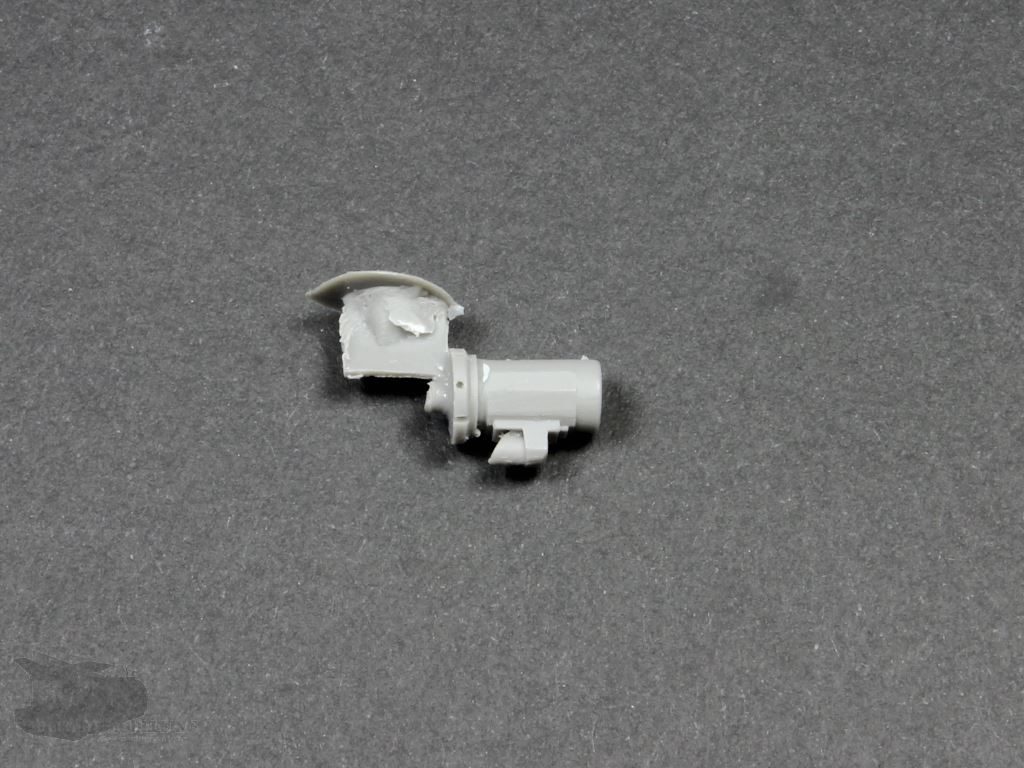 Auch diesmal sind die Bauteile von einwandfreiem Guss. Weder Verzug noch Blasen oder Ausbrüche sind zu erkennen. Sowohl das Rohr als auch der Kollimator sind schön detailliert.
