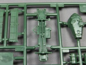 Die insgesamt 48 Bauteile des Bausatzes sind, wie bereits erwähnt, auf zwei identischen revell-typischen grünen Spritzgussrahmen verteilt.