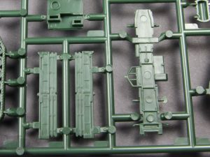 Mein positiver erster Eindruck zeigt sich an der Aufmachung und Detaillierung der Bauteile. Na gut, bei diesem Maßstab muss man halt Abstriche und Kompromisse in Kauf nehmen, was einem einfachen Bau geschuldet ist. Dies zeigt sich z.B. an den fehlenden Kettenpolstern bei der HS30-Kette und nicht vorbildgerechten Polstern bei der M47-Kette. Der Kühlergrill des MAN 5t ist ebenfalls ohne nähere Details. Hier ist der Spritzguss und vor allem der Formenbau wohl nah an seiner Grenze. Was etwas störende ist sind z.T. etwas ungeschickt positionerte Auswerfermarken. Diese zu Spachteln muss wohl jeder selbst entscheiden.