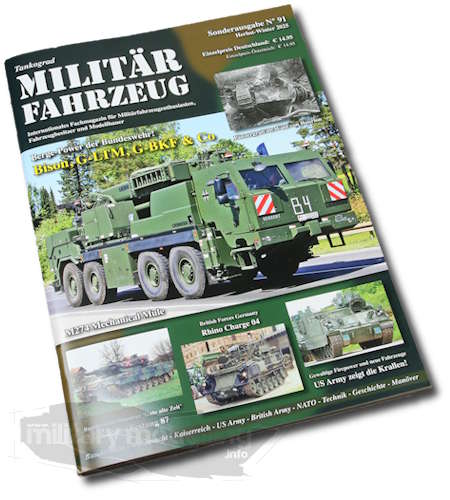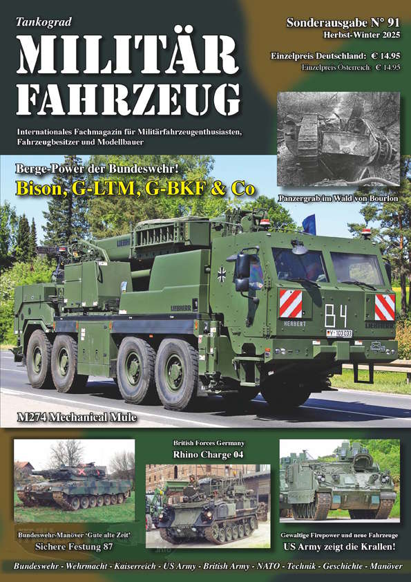Frisch auf dem Tisch, die Sonderausgabe 91 der ehemaligen Quartalszeitschrift Militärfahrzeug. Wie bisher gewohnt auch diese Ausgabe im DIN A4-Druckformat. Durchgehend mit Farb- und Schwarz-Weiß-Fotos bebildert, liegen die Texte durchweg in deutscher Sprache vor. Die Anzahl der Seiten auch diesmal wie bereits gewohnt 72 +4 Seiten.