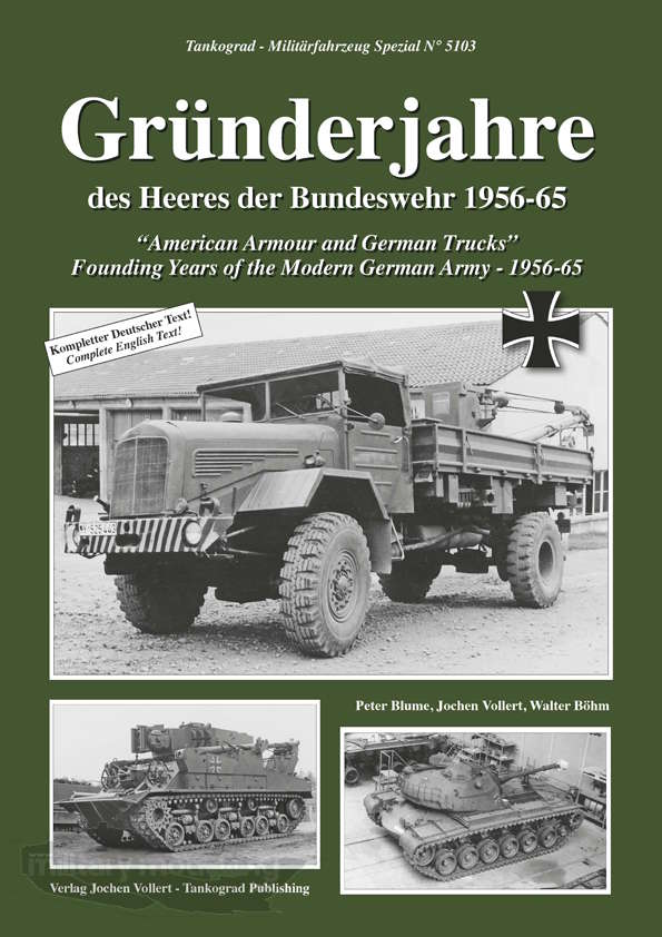Ganz aktuell aus dem Hause Tankograd Publishing ist die Ausgabe 5103 mit dem Titel „Gründerjahre des Heeres der Bundeswehr 1956-65“aus der Serie Militärfahrzeug Spezial bei der die Heerestrukturen 1 und 2 sowie die Ausstattung der Truppengattungen im Mittelpunkt stehen. Die erste Dekade der Wiederbewaffnung, 1956-65, kann fahrzeugtechnisch unter „US Panzerfahrzeuge und deutsche Lastkraftwagen” zusammengefasst werden.