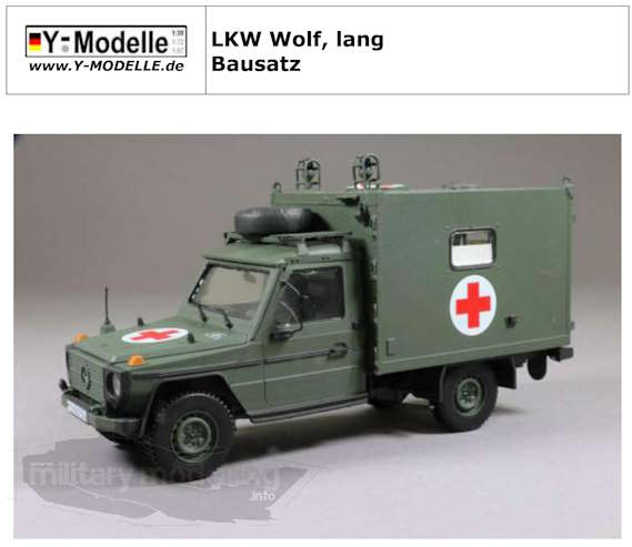 Moderne Bundeswehr-Fahrzeuge erzeugen immer meine ungeteilte Aufmerksamkeit. Y-Modelle bietet nun einen Umbausatz zum DB GD 250 Wolf, KrKw / SanHFzg auf Basis des Revell-Bausatzes des Wolf an. Schauen wir also mal rein…